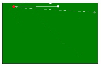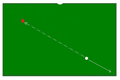 Shoot the object ball in the corner pocket with a draw having slight left bottom english. You should be able to draw the cue ball without any difficulty. If you have a good and smooth stroke, you will be able to draw the cue ball back to the rail easily. If you really have mastered this stroke, you could be able to send the cue ball to the other rail.
